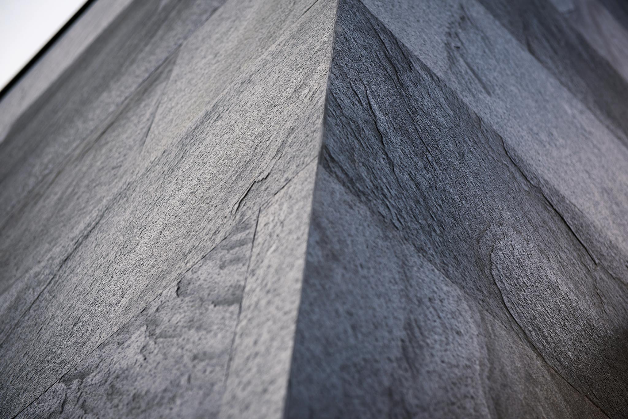 Slate-Lite ist ein innovatives Furniermaterial mit einer echten Steinschicht – gerade einmal 1 bis 1,5 Millimeter stark. Möglich macht das ein spezielles Herstellungsverfahren, bei dem hauchdünne Steinlagen von größeren Gesteinsblöcken abgelöst und mit einem flexiblen Trägermaterial wie Glasfaser oder Baumwolle verbunden werden.